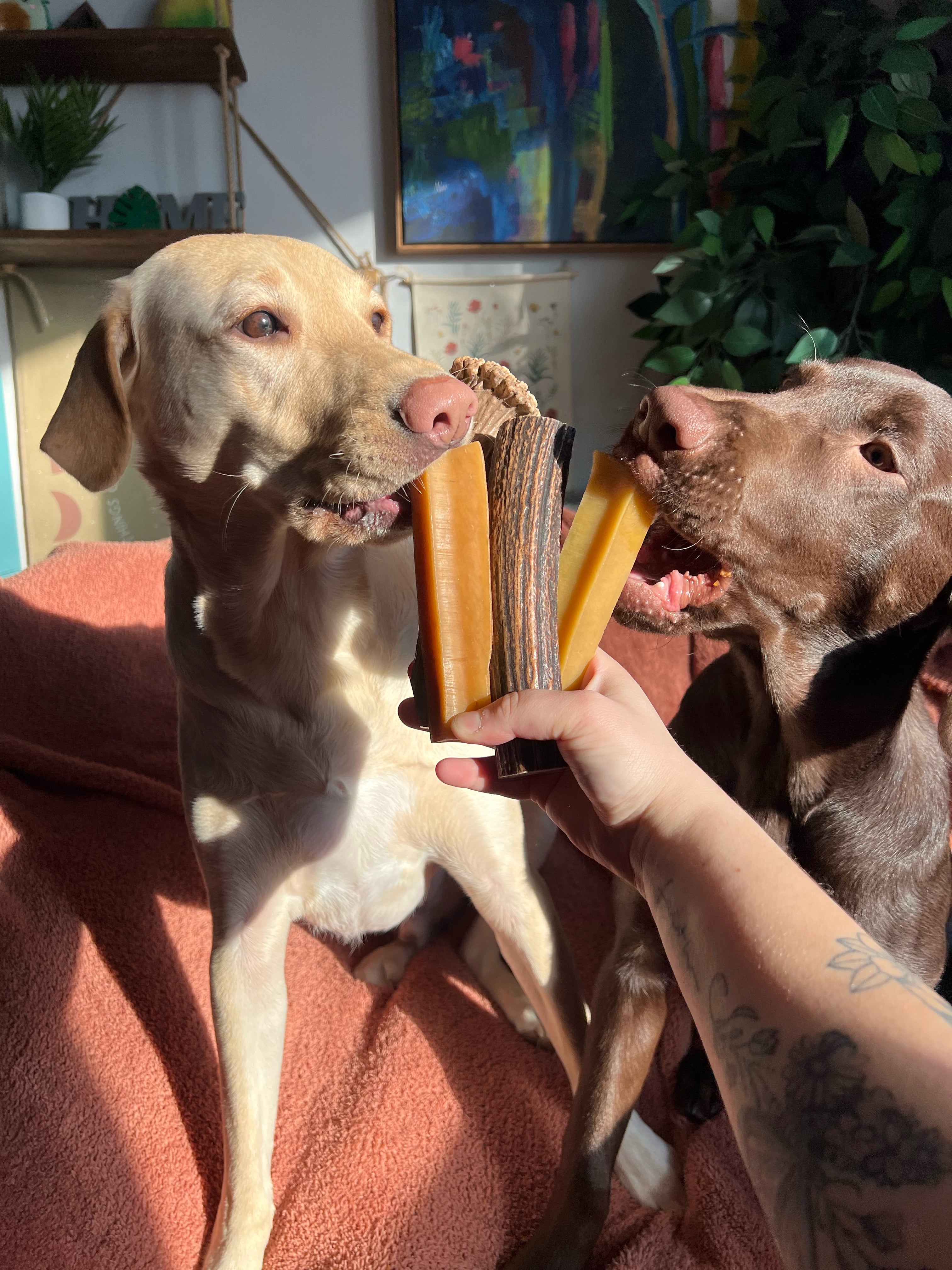 Summit Chews are made from 100% natural ingredients—no fillers, additives, or chemicals. Our antler chews are Grade A, naturally shed, and air-cured for maximum flavor and safety. Our yak chews are crafted with yak milk, lime juice, and salt. That’s it.
